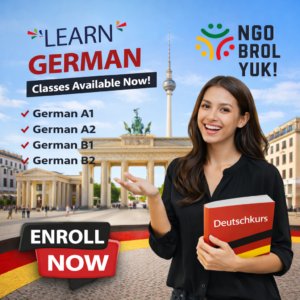 Kamu akan belajar cara memperkenalkan diri, mengajukan pertanyaan sederhana, serta menghadapi berbagai situasi harian.